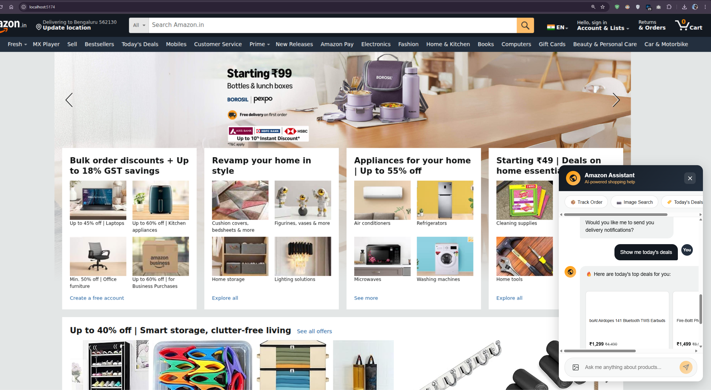 If you propose a "chatbot" feature like in the image you see here, it asks about the various features. Within minutes of answering these prompts, you are presented with a locally running Next.js application. You can click the buttons, see the hover states, and experience the flow.